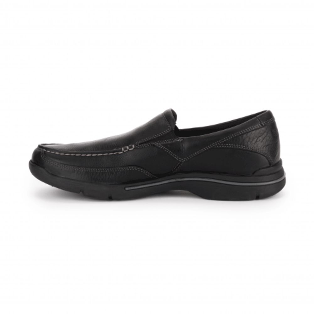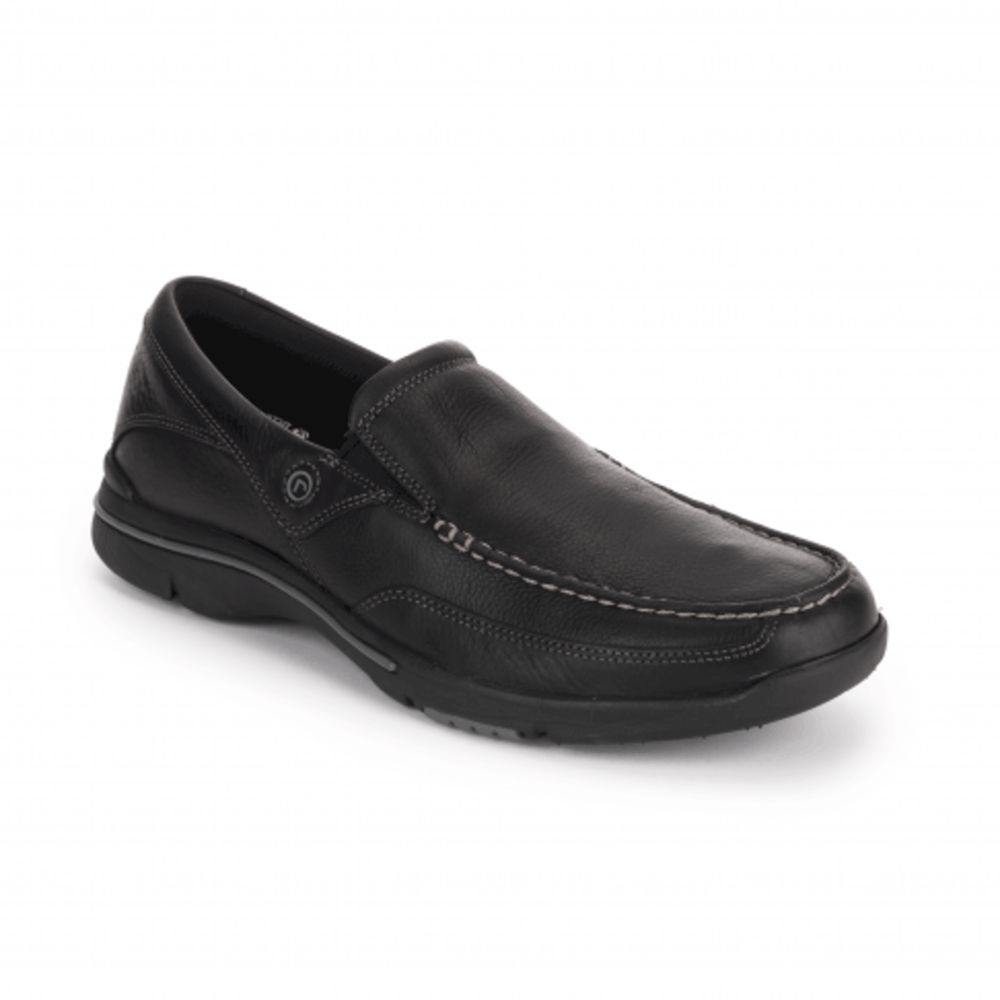 Classic, go-anywhere comfort is the hallmark of the City Play Eberdon by Rockport® This casual men's Slip On shoe is right at home in a casual workplace, a day of sightseeing, or a weekend of relaxing. Crafted from genuine leather, the uppers are easy to clean and maintain. In the footbed, truTECH® sport technology provides shock-absorbing cushioning that helps reduces foot and leg fatigue. Additional cushioning is provided by the EVA outsole. Durable rubber grips securely to any terrain, from the trail to the tarmac. Designed for maximum comfort, this men's leather casual shoe features the renowned Strobel construction for forefoot flexibility. Inside, a mesh liner promotes ventilation to help keep feet cool and dry.