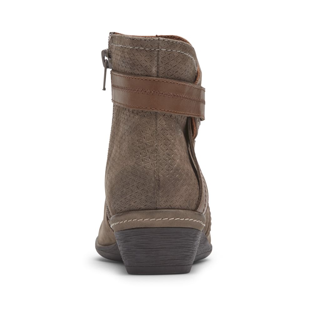 Taking booties in a new direction… the Devyn has an angled wraparound strap, ruching on the front, perforations at the back. An antiqued effect on the leather adds an artisan touch, and the low heel gives just the right amount of lift. Together these design details bring a cool attitude to a low ankle boot style, perfect for walks around town, a casual office, or coffee meet-ups.