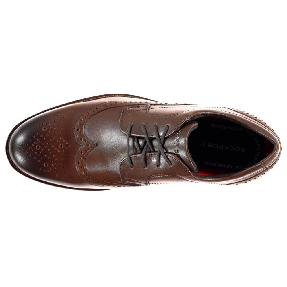 Rockport Dust Brogues Mens These Rockport Dust Brogues are crafted with lace fastening and a padded ankle collar for a secure, locked in fit. They feature a cushioned insole for comfort and a chunky sole for grip. These shoes are designed with tonal stitching and are complete with Rockport branding.