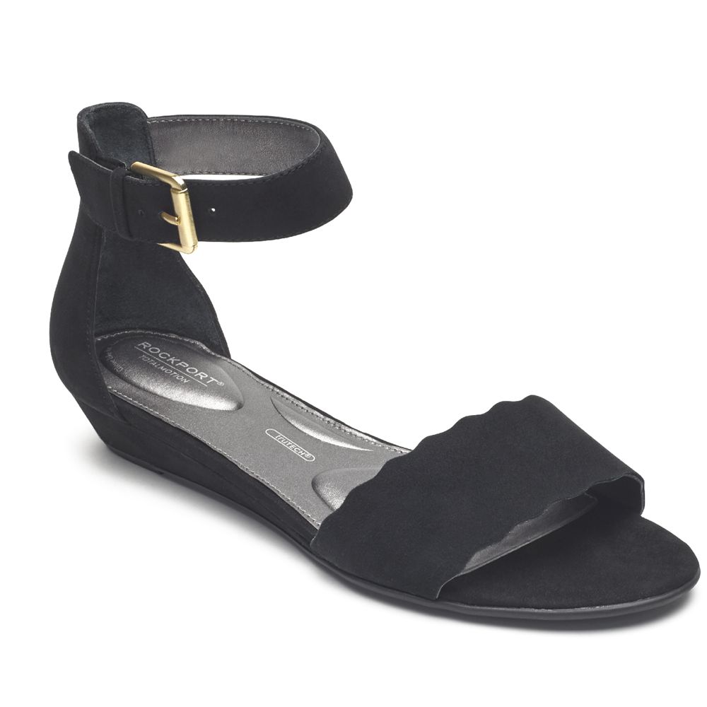 A sweetly scalloped band across the toe of these Total Motion® sandals enhances their delicate appearance without compromising on comfort. An adjustable ankle strap and padded footbed ensure proper fit for all-day wear.